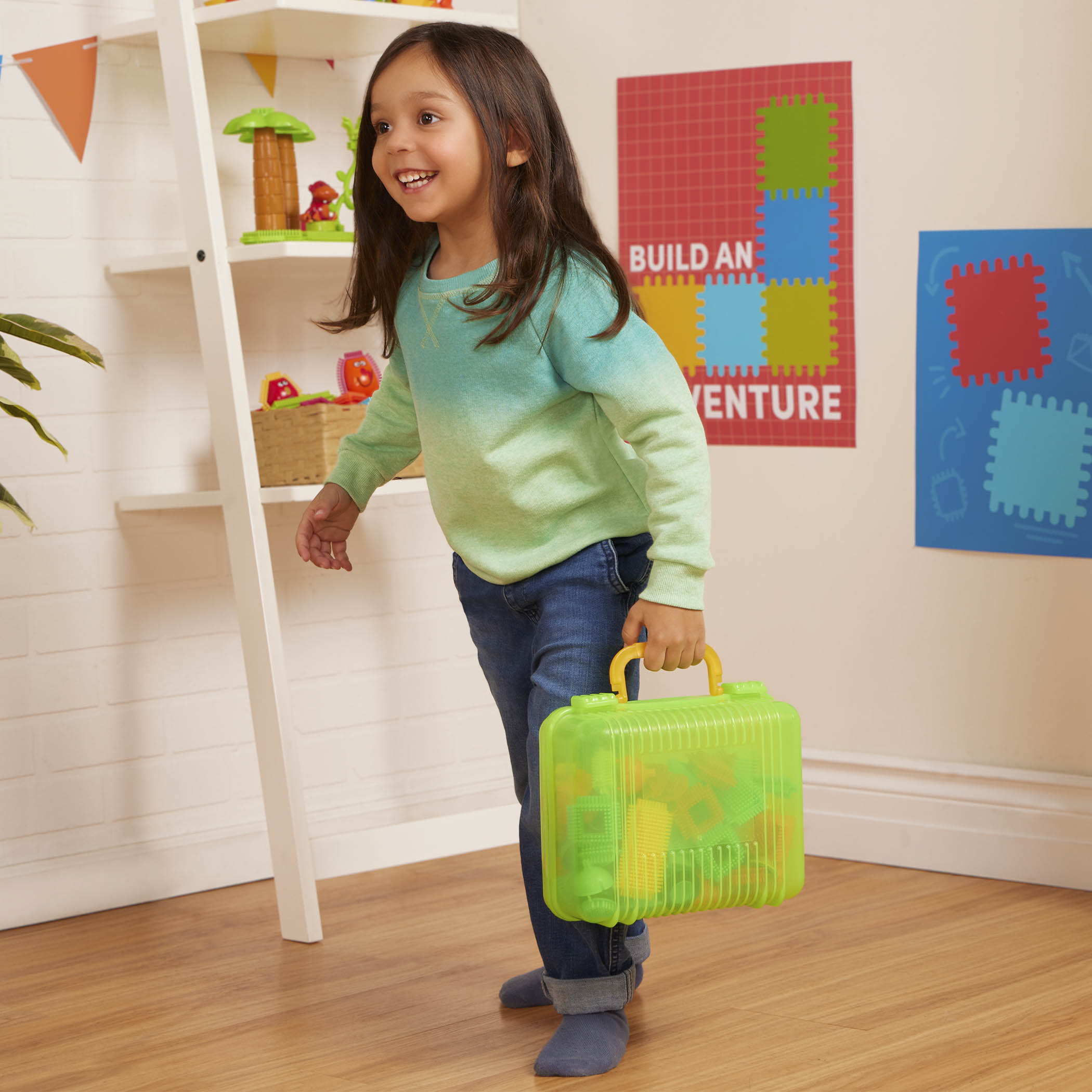 Zestaw zapakowany w praktyczną walizkę, w sam raz zarówno do przechowywania, jak i transportowania klocków.