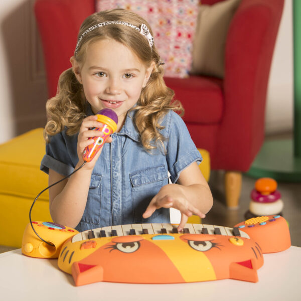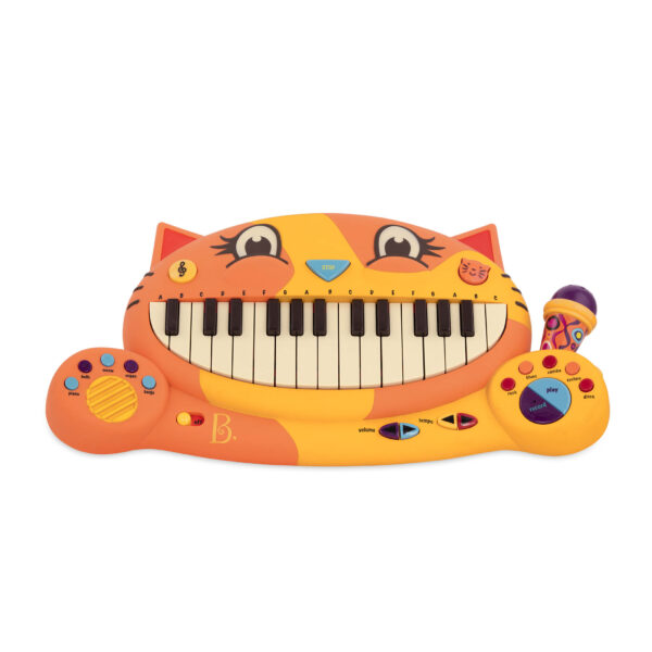 Mnóstwo funkcji i muzycznych atrakcji w jednej zabawce: możliwość wyboru jednego z pięciu różnych brzmień, pianina, organów, dzwonów i bandżo oraz melodii wyśpiewywanej uroczym „miau, miau”, pięć różnych muzycznych rytmów do zapoznania się; rock, blues, samba, techno i disco; odtwarzanie 20 znanych piosenek i 7 zabawnych „kocich” melodii, które rozweselą każdego; regulacja głośności, rytmu i tempa; mikrofon – niezbędny rekwizyt małego piosenkarza, wciągany automatycznie na miejsce, dzięki czemu się nie zgubi; możliwość nagrywania i odtwarzania własnej kompozycji (do 50 nut), granej na klawiszach.