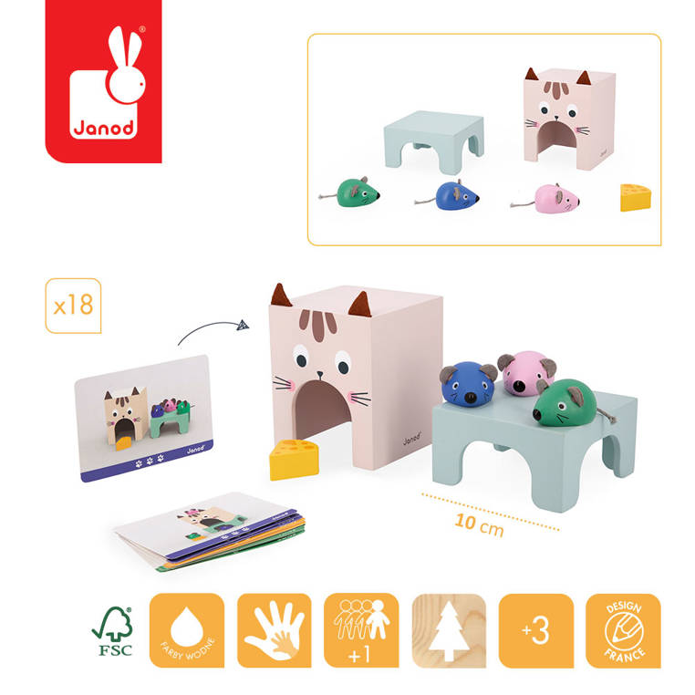 Drewniana układanka Orientacja w przestrzeni Kot i mysz 3+, Janod