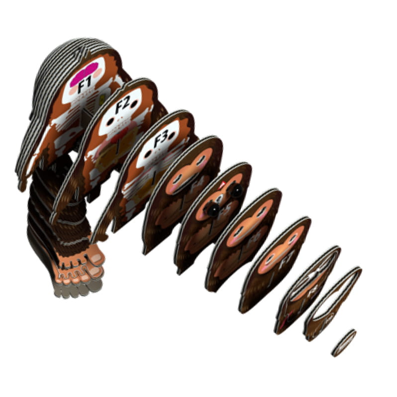 Aaaa!! To Wielka Stopa! Sasquatch podobno żyje w Górach Skalistych, ale widziana była także w Azji i Ameryce Południowej. Przez świadków Wielka Stopa opisywana jest jako potężna, człekokształtna istota wysoka na 3 metry, pokryta gęstym futrem koloru brązowego. Sasquatch Eugy ma wielkie stopy i małych przyjaciół wijących się w jej brązowym futrze. Układając dzieci zobaczą wnętrze Wielkiej Stopy - szkielet, mózg. Po ułożeniu dzieci będą miały mitycznego przyjaciela do zabawy i na półce.