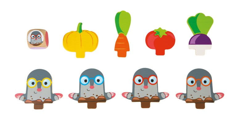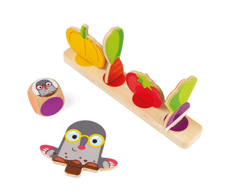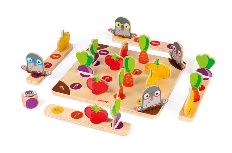 Gra wyścig Strzeż się kreta! francuskiej marki JANOD to wspaniała zabawa dla dwóch do czterech osób – zarówno dzieci, jak i dorosłych. Zestaw zawiera drewnianą planszę, podkładki i elementy, które się na nich umieszcza, tj. 4 krety oraz po 4 sztuki warzyw: rzepy, pomidorów, marchewki i dyni, tworzących mały ogródek. Gracze wcielają się w role ogrodników i mają za zadanie zebrać koszyk pełen plonów, wykazując się sprytem i unikając kretów. Wygrywa gracz, który jako pierwszy zgromadzi po jednym z każdego gatunku warzyw.