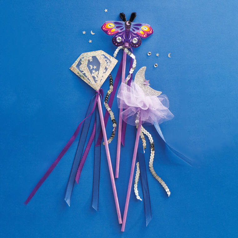 Zestaw do stworzenia różdżek Szkoła magii francuskiej marki JANOD pozwoli skonstruować łącznie 3 fioletowo-srebrne różdżki z załączonych elementów, tj. patyczków, koralików, wstążek itp. W skład zestawu wchodzą ponadto samoprzylepne arkusze ze wstępnie naciętymi kształtami (księżyc, diament, motyl) oraz inne dodatki. Do zestawu dołączona jest szczegółowa instrukcja jak krok po kroku wykonać poszczególne ozdoby. Dzięki niej w kilka chwil Twoje dziecko może stać się kreatywnym artystą! Projektowanie i tworzenie to długie godziny angażującej i jednocześnie uspokajającej, wyciszającej zabawy, a po skończonej pracy powstałe dzieła mogą jeszcze długo służyć jako ozdoby, akcesoria do zabaw i kostiumów lub podarunki dla bliskich. Zestaw zaprojektowano we Francji we współpracy z francuską grupą mediową i wydawniczą Hachette. Zapakowany jest w stylowe kartonowe pudełko z klapką i przegródkami. Idealnie sprawdzi się ono do przechowywania stworzonych świecidełek i innej dziewczęcej biżuterii czy skarbów. To doskonały pomysł na prezent!