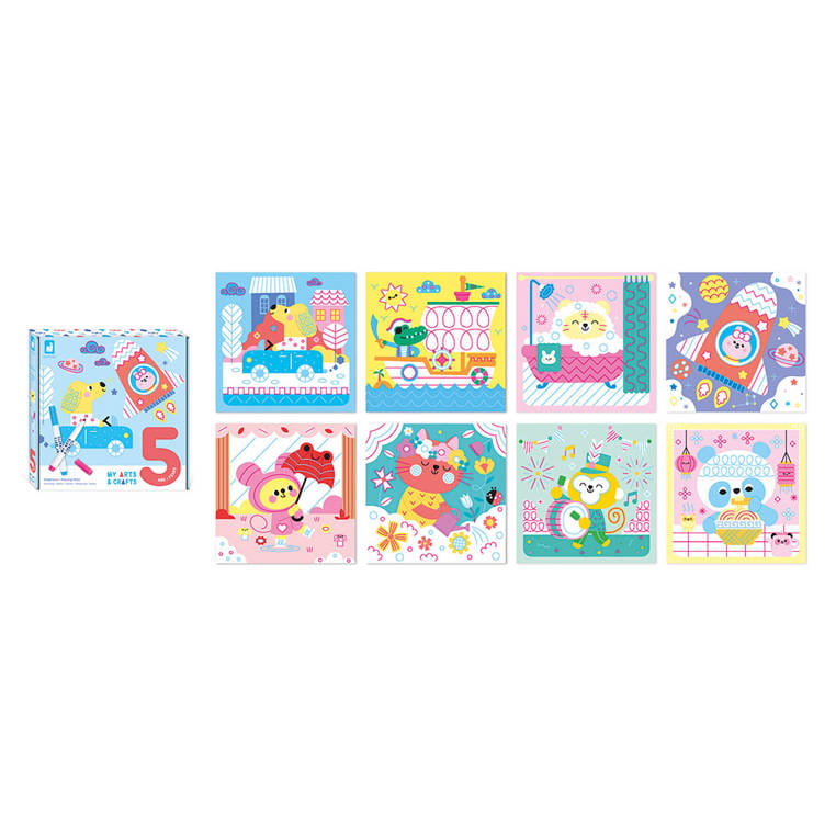 Seria My arts & crafts przeznaczona jest dla dzieci w wieku przedszkolnym (3-5 lat) i zachęca je do twórczej aktywności, odpowiadającej ich bieżącym potrzebom poznawczym oraz manualnym. W kolekcji znajdują się m. in. naklejanki, wycinanki i szlaczki, ale też multizestawy, łączące różne rodzaje kreatywnych działań.