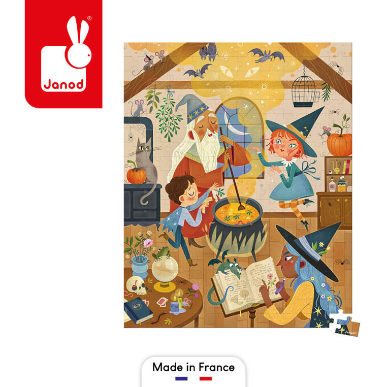 Zestaw puzzli w walizce Czary francuskiej marki JANOD składa się z 200 elementów, po ułożeniu tworzących piękny, bogaty w szczegóły obrazek, przedstawiający rodzinę czarowników podczas wykonywania magicznych rytuałów. Puzzle wykonane są z solidnego kartonu. Zaprojektowane i wyprodukowane we Francji. Zapakowane w estetyczną walizeczkę z rączką. Idealnie nadają się na prezent.